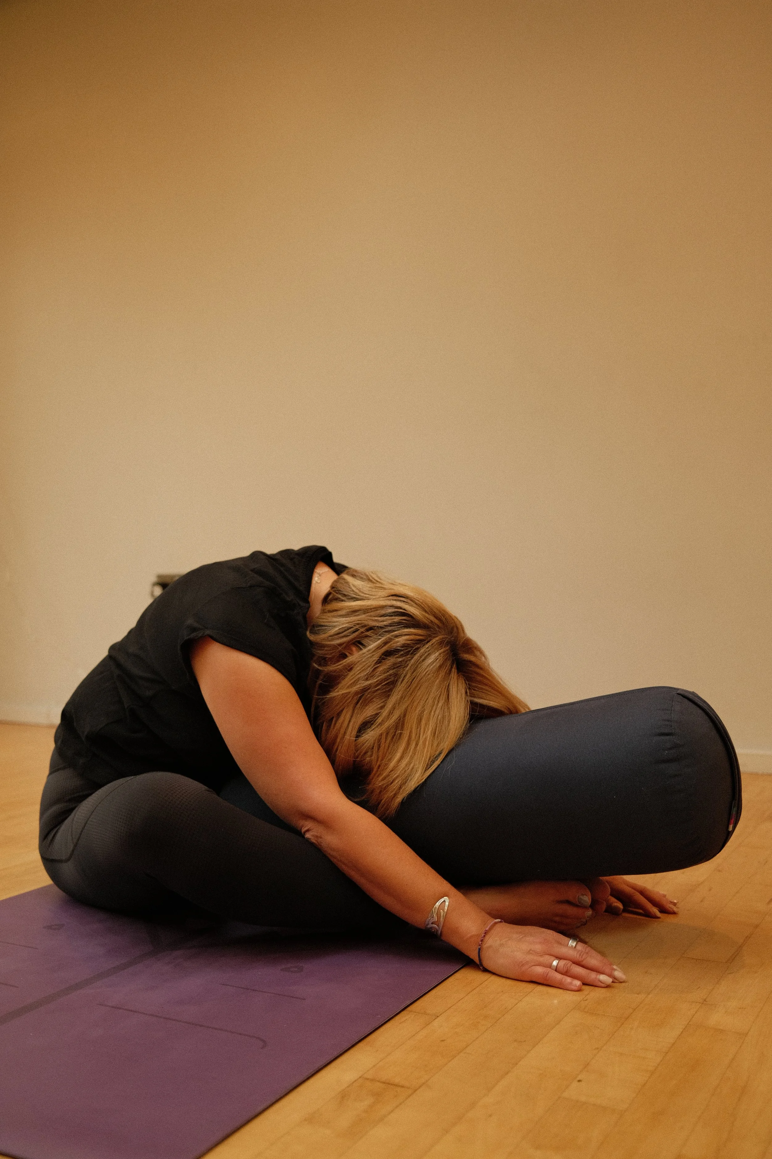 Yin yoga works deeply into our bodies with supported passive long-held stretches. It targets the deep connective tissues in the body: tendons, ligaments and the fascia. It is both relaxing and energising.